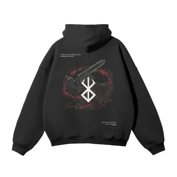 Berserk The Struggler Oversized Black Hoodie – Guts Brand of Sacrifice Print